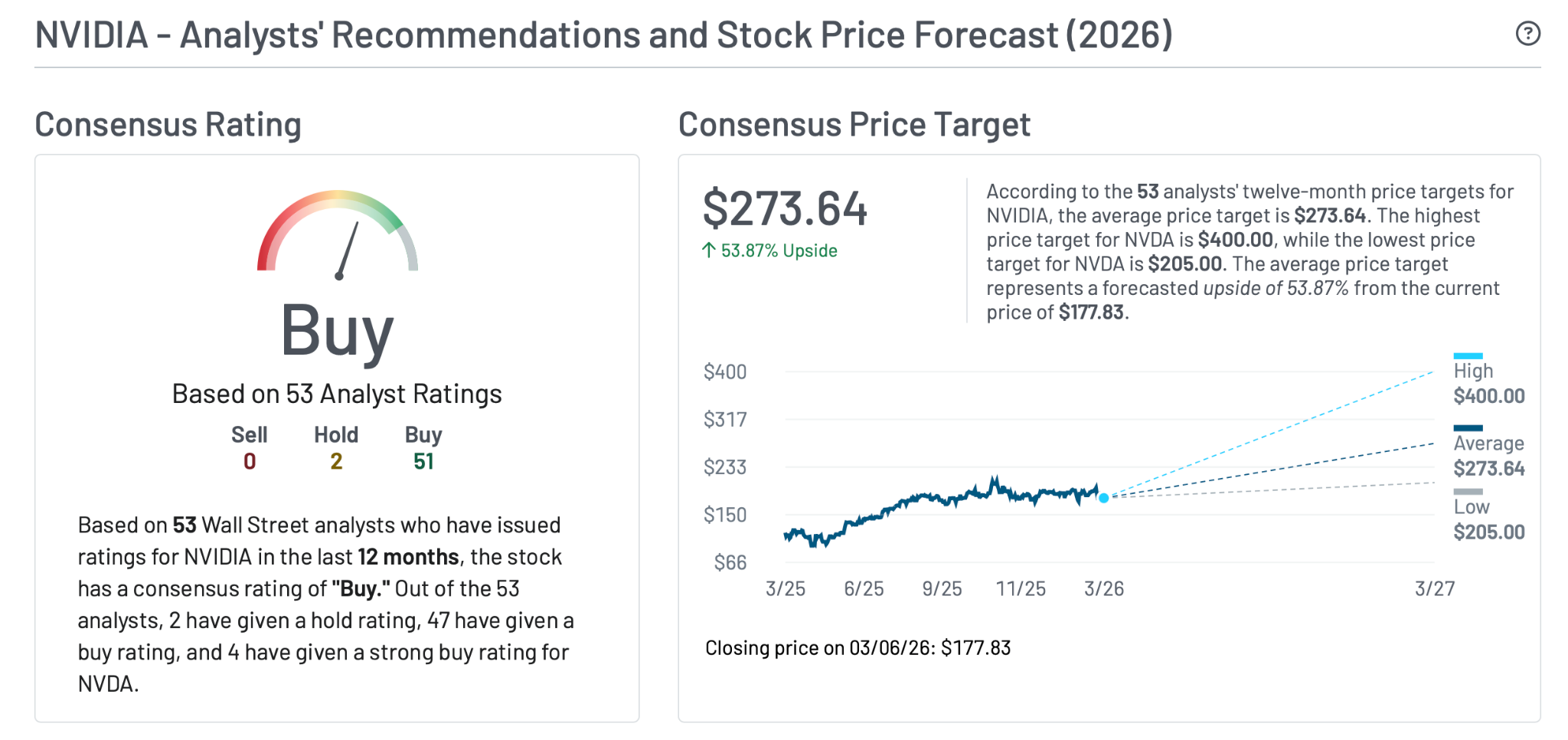分析師 Ivan Feinseth 本週將其 NVDA 股票目標價從 350 美元上調至 360 美元,同時維持其強力買入評級。鑑於股價交易在 183 美元附近,該目標價意味著在未來十二個月內約有 97% 的回報率,這將使 NVIDIA 的估值接近 9 兆美元。看漲的論點基於超大規模企業承諾在 2026 年投入超過 6500 億美元的資本支出,而 NVIDIA 將佔據其中最大份額。
